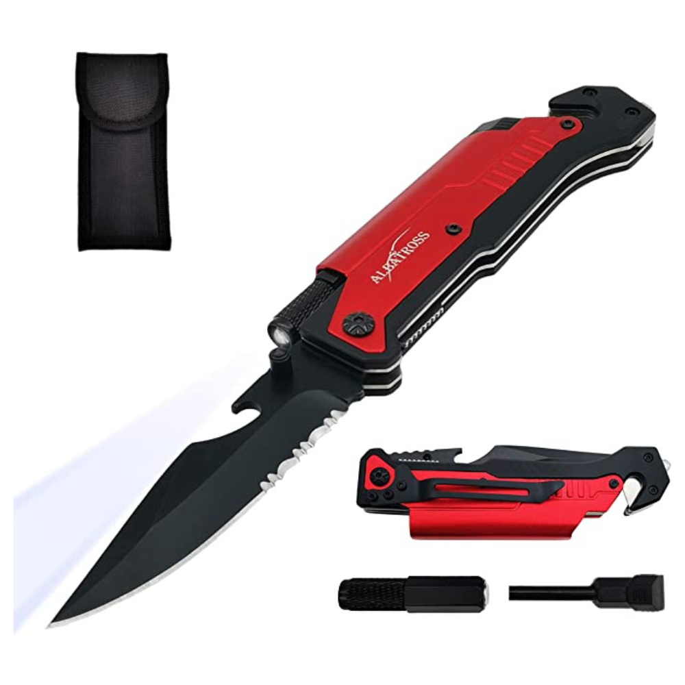 The 6-in-1 Survival Tactical Military Folding Pocket Knife with LED Light is a great tool to have with you whether you're out in the wilderness or just working around the house. The knife has a sharpness, durability and reliability that is unmatched, making it perfect for any task.