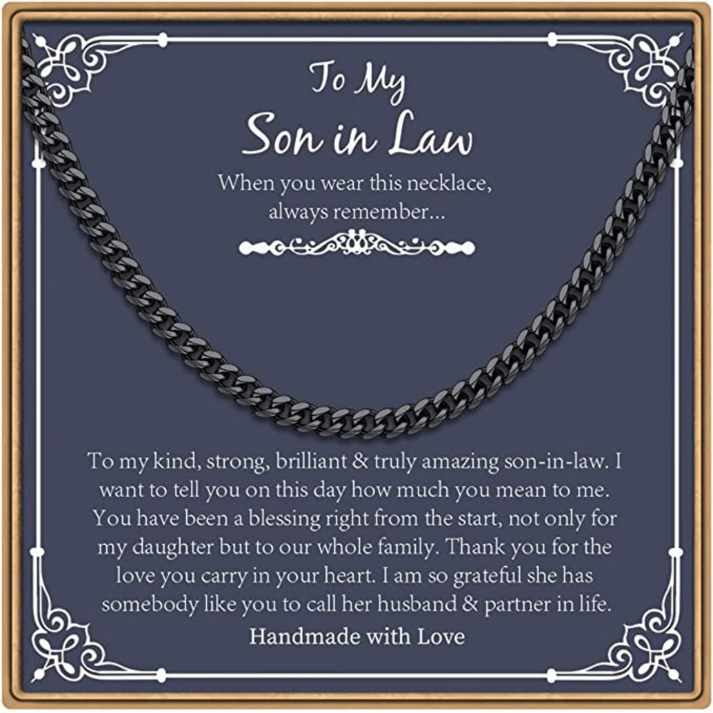 The chain measures 20 inches in length, making it comfortable for your son-in-law to wear, and the nickel-free and lead-free construction makes it hypoallergenic and safe for daily wear. The smooth and round edge design also ensures that it won't scratch the skin.