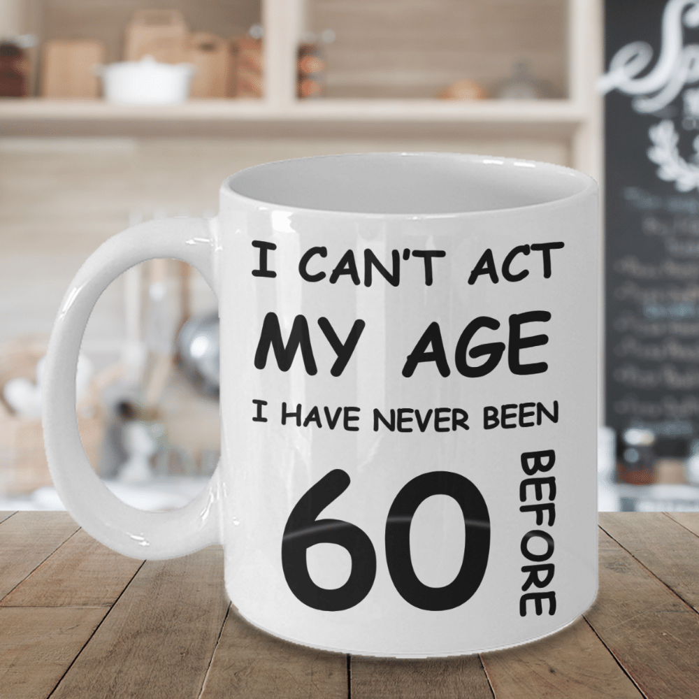I can't act my Age, I have never been 60 Before - Funny White Porcelain Coffee 11 oz