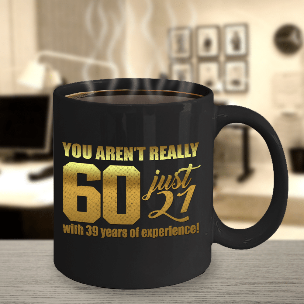 60th Birthday Coffee Mug, I Am 59+1, Grandpa, Grandma, Mom, Dad, Birthday Mug- Black Porcelain Coffee Mug 11 Oz 60th birthday gifts for dad. This is a 11 oz mug which is dishwasher safe and microwave safe. THE PERFECT GIFT - Great for any tea or coffee lover, for all occasions! 100% Dishwasher and Microwave safe. Shipped in a custom made styrofoam package to ensure it arrives perfect.Packaged, and shipped from the USA.