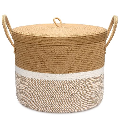 Our runner-up to the best baby blankets is this LOVSTORAGE 20.5"x14.5" Large Rope Blanket Basket with Lid, Woven Storage Basket Baby Laundry Basket Hamper Decorative Nursery Toy Bin with Handles for Living Room Bedroom. This cute storage basket will hold a variety of different items, making it suitable for more than just your laundry needs.
