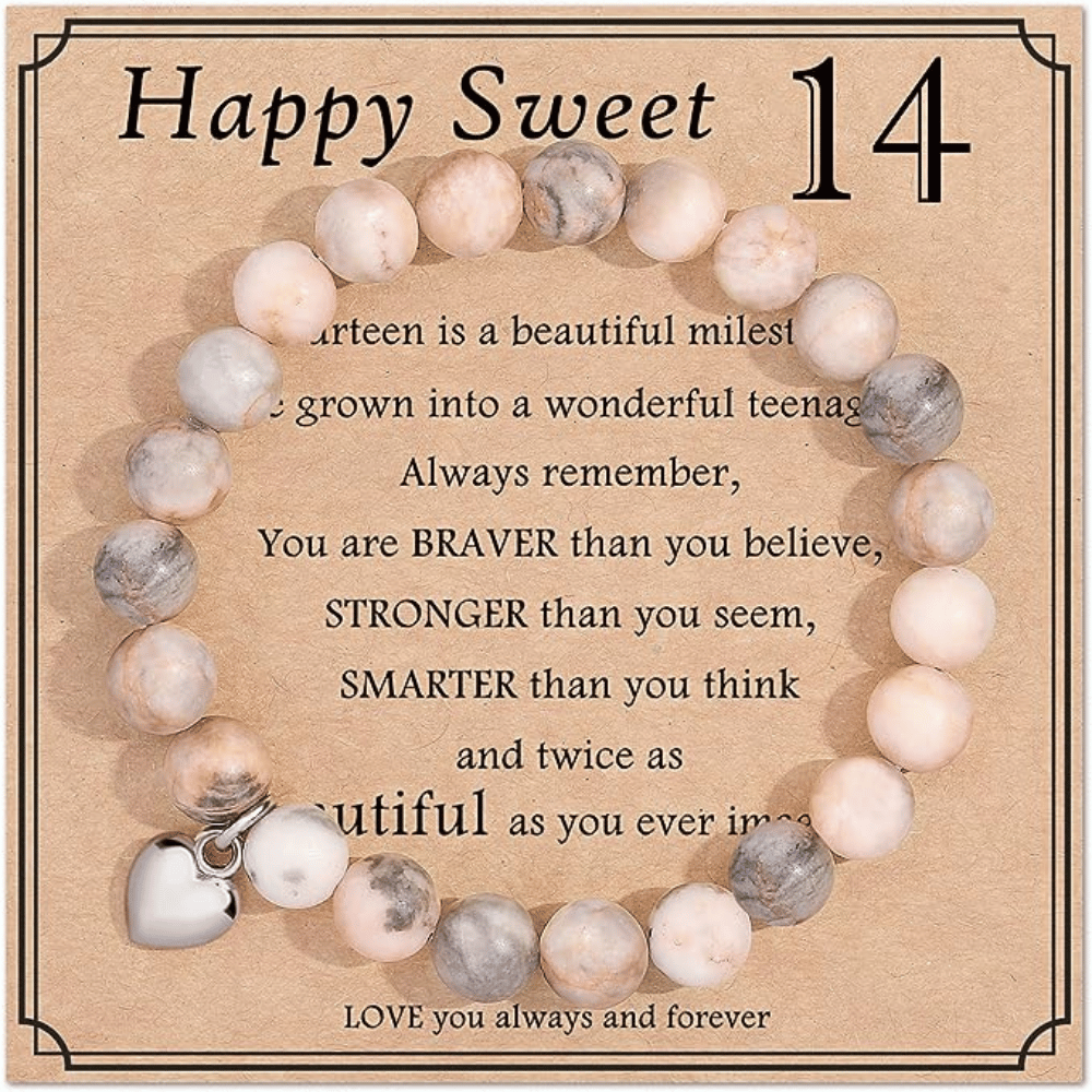 Elevate gifting to an art form with the Jewelry&Card Birthday Gifts for Women Girls Natural Stone Bracelet - 14 Bracelet. This bracelet isn't just an accessory; it's a cherished sentiment, a tangible reminder of strength, and a lasting wish for the journey ahead. Make this milestone even more beautiful with a gift that's as meaningful as it is elegant.