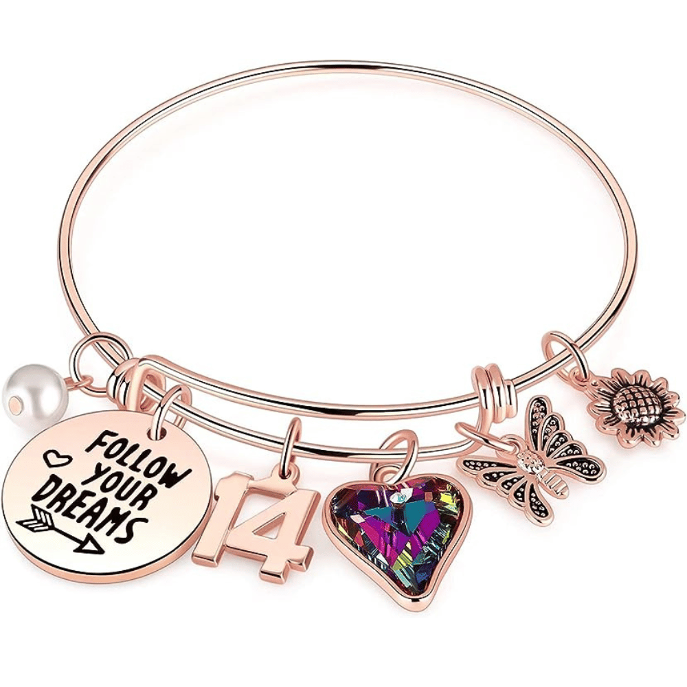 ๐ Birthday Gifts for Girl: Engraved with a collection of meaningful charms including lucky number 14, heart, crown, sunflower, cake, and arrowhead, this bracelet is the perfect birthday present for the girl turning 14. A fabulous and inspirational jewelry piece that captures the essence of this milestone celebration.