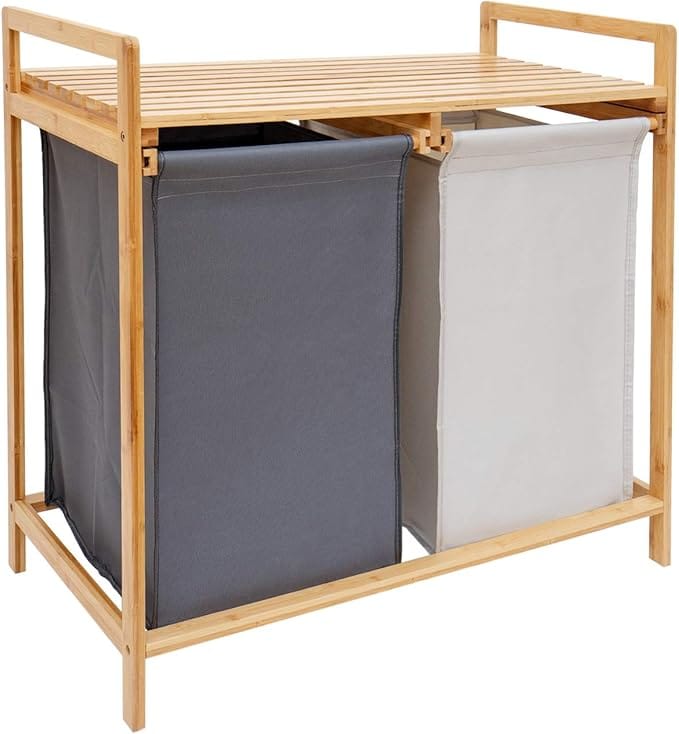 3. The Double-Compartment Bamboo Laundry Sorter