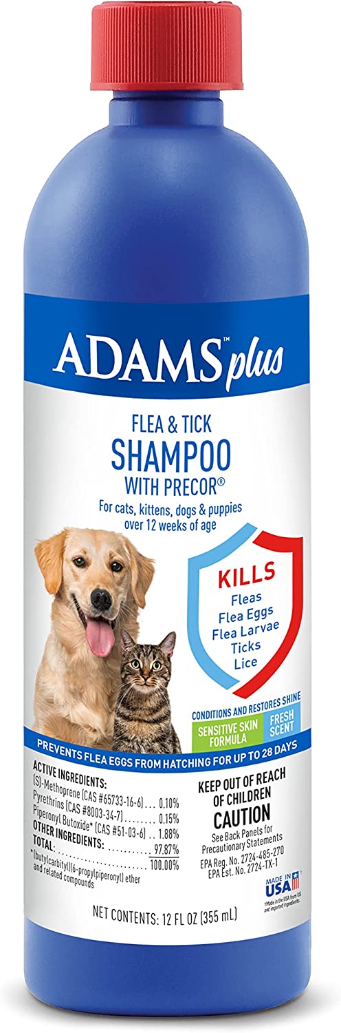 Adams Plus Flea & Tick Shampoo with Precor for Cats, Kittens, Dogs & Puppies Over 12 Weeks Of Age Sensitive Skin Flea Treatment