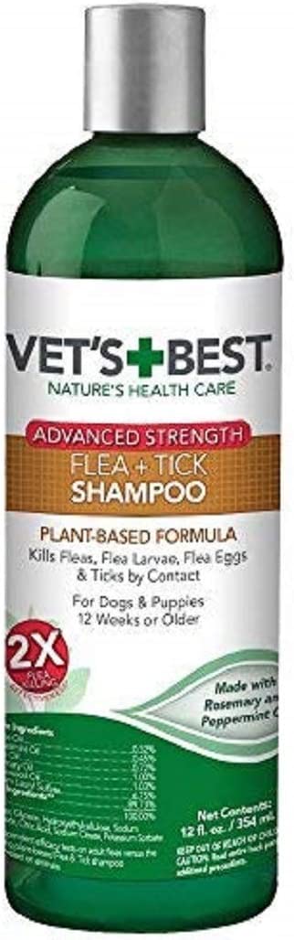 Vet's Best Flea and Tick Advanced Strength Dog Shampoo is a plant-based formula that is effective against fleas and ticks. The shampoo contains natural ingredients, including extracts of eucalyptus oil and peppermint oil, which work together to kill adult fleas, larvae, and eggs. This formula is also safe for dogs of all ages and can be used on a weekly basis. In addition to being an effective flea treatment, Vet's Best Flea and Tick Advanced Strength Dog Shampoo also leaves your dog's coat looking and smelling fresh. The eucalyptus oil in the formula provides a natural, refreshing scent, while the mint oil helps to soothe your dog's skin. This shampoo is a great way to keep your dog healthy and flea-free.