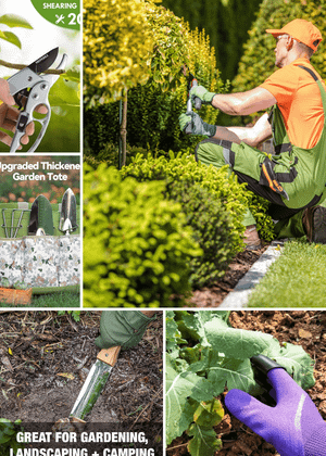 With 43 pieces included, this kit contains everything you need for watering, seeding, weeding, transplanting plants, and loosening soil. The heavy-duty metal gardening tools, including trowel, transplanter, hand rake, cultivator, weeder, and pruner, are made from high-quality aluminum alloy for durability and rust-resistance. Plus, the soft, non-slip rubber handles ensure a comfortable grip for hours of gardening enjoyment.