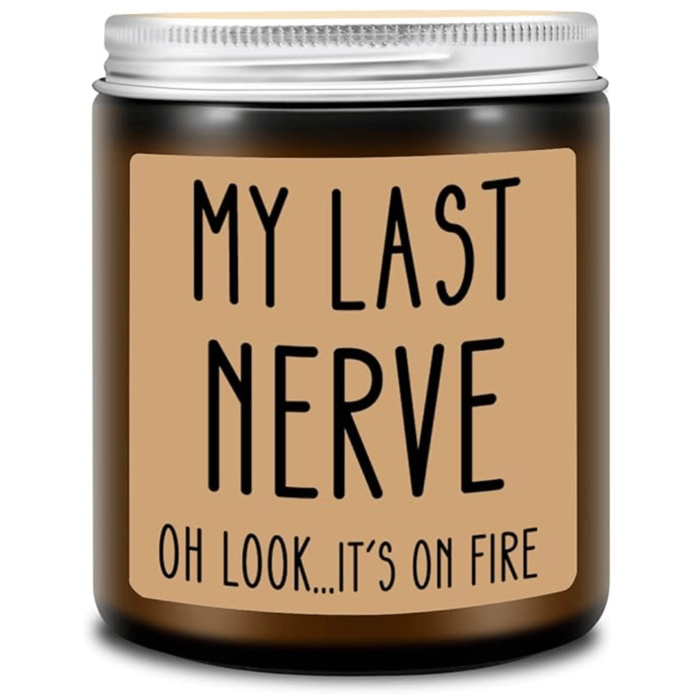Looking for a unique and hilarious gift that will make anyone laugh? The Homsolver "My Last Nerve" Candle is the perfect choice. This funny and delightful scented candle makes an excellent gift for mom, dad, best friend, sister, BFF, or anyone who could use a good laugh and some relaxation.