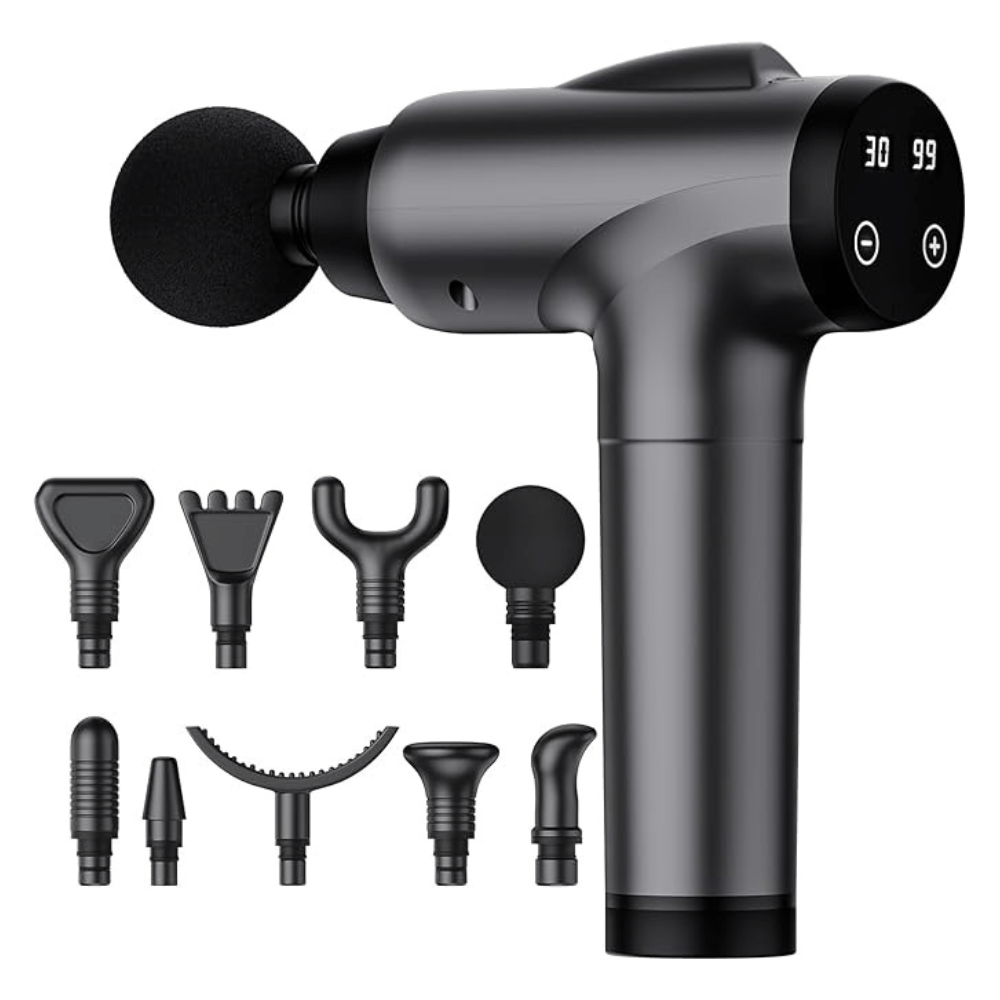 Featuring 9 massage heads and 30-speed levels, this muscle massager gun can target various muscle groups, including deep tissue. Ideal for massaging legs, arms, back, torso, and neck, it offers customized relief for all your needs.