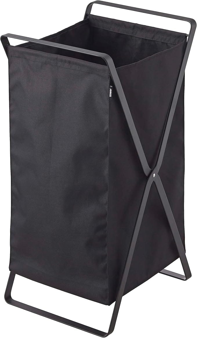 Yamazaki Home Laundry Basket - Foldable Storage Hamper Organizer Steel One Size Black