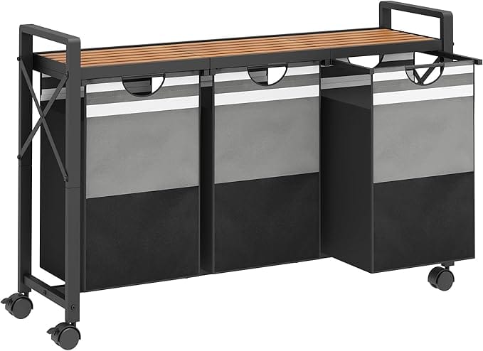 This reliable laundry basket with shelf is a practical and stylish solution for any laundry room. With three bags and a top shelf, it offers ample storage and sorting options.