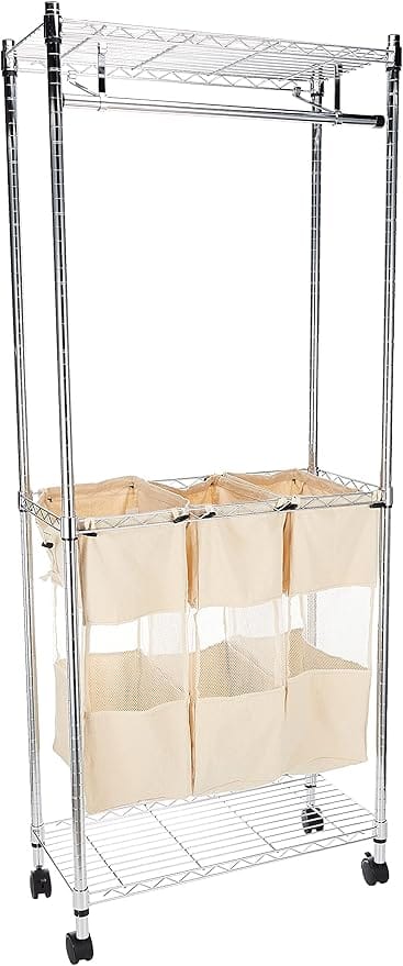 AmazonBasics 3-Bag Laundry Sorter with Shelf