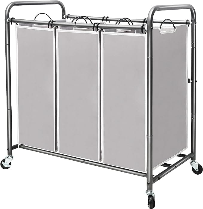 STORAGE MANIAC 3 Section Laundry Sorter, 3 Bag Laundry Hamper Cart with Heavy Duty Rolling Lockable Wheels and Removable Bags, Laundry Organizer Basket Clothes Separator Hamper, Gray