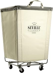 Seville Classics Large Commercial Heavy Duty Rolling Steel Frame Laundry Hamper Canvas Cart Bin, w/ Wheels for Hotel, Home, Closet, Bedroom (PATENTED), Cream, 18.1" D x 18.1" W