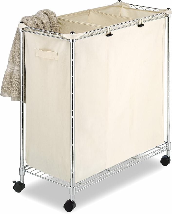 The Oceanstar 3-Bag Rolling Laundry Sorter is a sleek and stylish option for those who want to keep their laundry room looking neat and tidy. With three removable bags and smooth-rolling wheels, shelves, closet, add, day, share, storage this sorter is as functional as it is attractive.