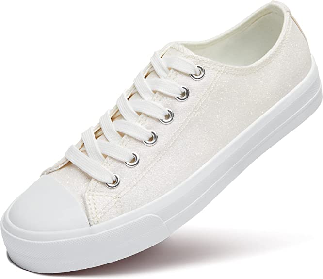 ZGR Women’s Canvas Low Top Sneaker Lace-up Classic Casual Shoes Black and White