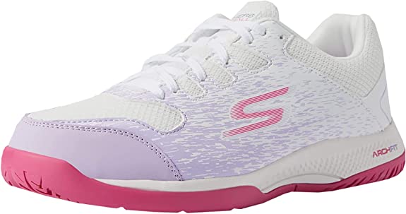 The Skechers Pickleball Shoes are designed with a podiatrist-certified arch support insole and an adjustable lace-up front for a comfortable workout. The breathable athletic mesh upper provides cooling effect, while the rubber sole delivers enhanced traction for indoor and outdoor court play.