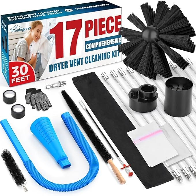 Professionals often reach for the Sealegend 17-Piece Dryer Vent Cleaner Kit Omnidirectional Include 30Feet Dryer Vent Brush Blue Dryer Vacuum Attachment Lint Brush Vacuum&Dryer Adapter. This kit comes with a high-quality synthetic brush head and flexible rods that can extend up to 30 feet, making it perfect for reaching deep into the vent system.