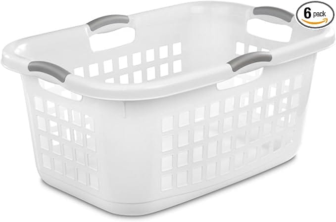 Sterilite 2 Bushel Ultra Laundry Basket, Large, Plastic Hamper with Handles to Easily Carry Clothes to and from the Laundry Room, 6 Pack, White