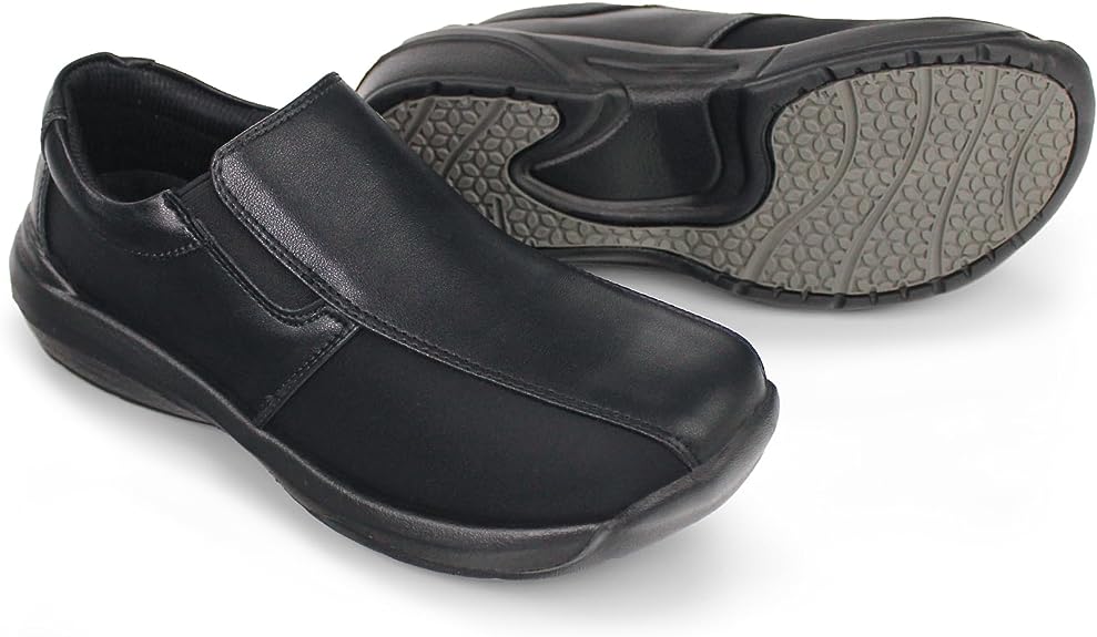 Dress shoes or loafers can be suitable if they provide the necessary support and comfort. Look for options with cushioned insoles and non-slip outsoles. Consider brands like Clarks or Rockport that offer dressier styles with supportive features.