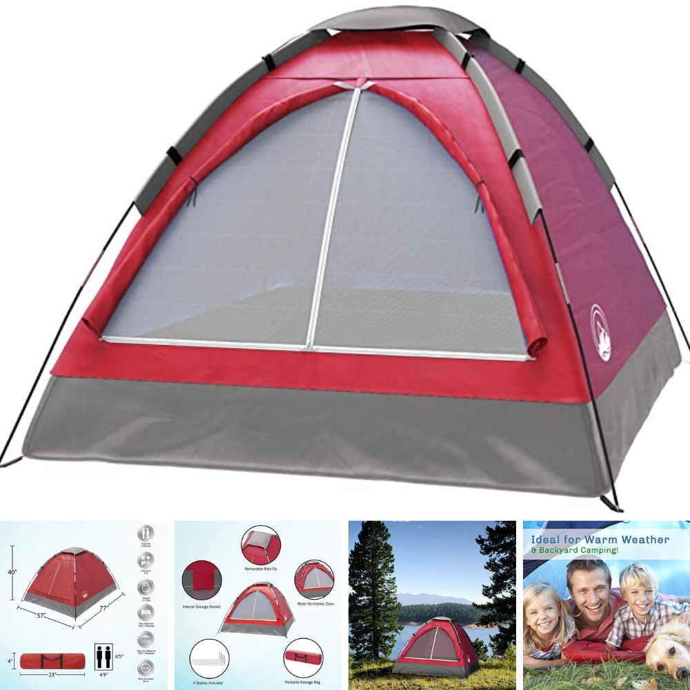 The 2-Person Camping Tent from Wakeman Outdoors is perfect for a camping trip with a friend or family member. The nylon material is sturdy and the rain fly helps to ensure that water does not make its way inside the tent, so you can enjoy a dry trip. The tent is also lightweight and has a large D-style door for easy access. With an interior height of 3.50 feet and 6.25 foot x 4.80 foot dimensions, this tent has plenty of space for you and your camping buddy. Plus, it comes with an interior storage pocket to keep your small items organized.