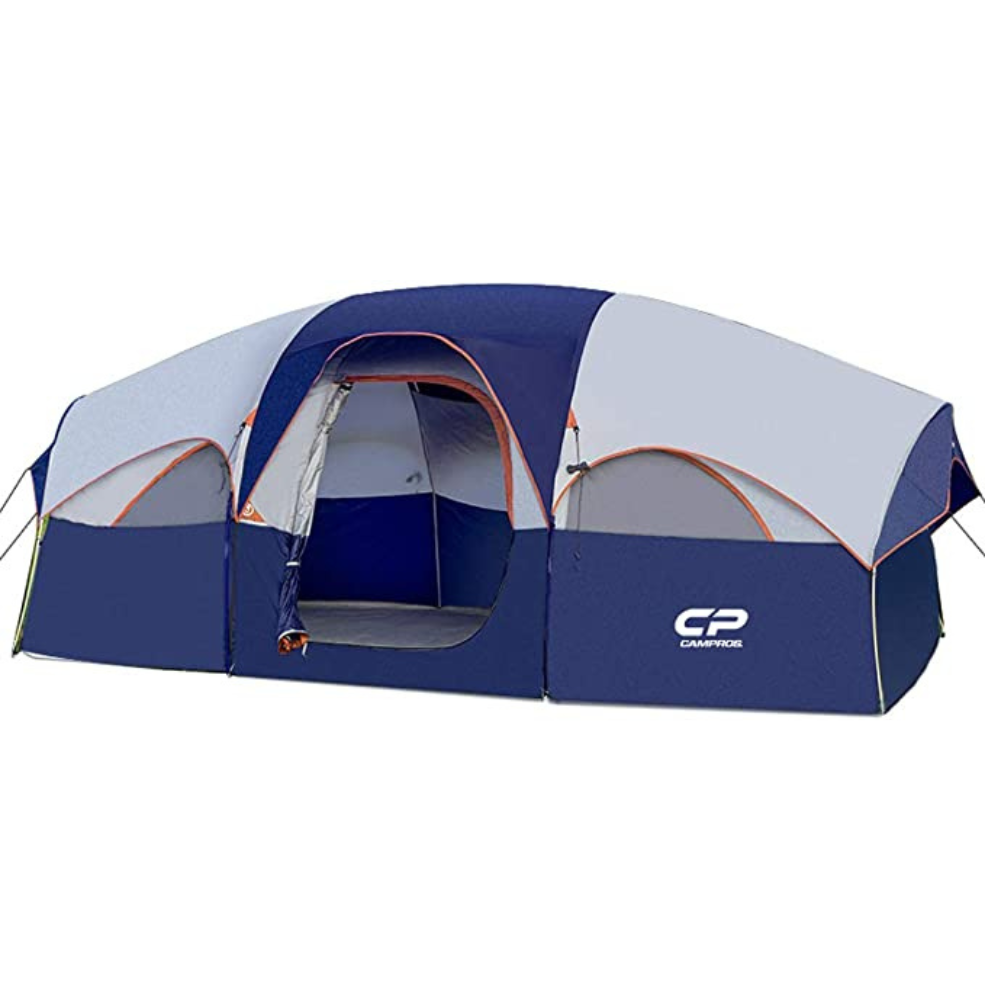 The Coleman Montana Cabin camping tent is a great option for those looking for an 8-person tent. This tent provides easy access thanks to the hinged door feature, and also includes a rainfly and inverted seams to keep water out. Additionally, the angled windows allow for extra air circulation. This camping tent also has a convenient E-Port to bring electrical power into your tent, and also includes door awnings for extra weather protection. Overall, the Coleman Montana Cabin camping tent is a great option for those looking for an 8-person tent with features that make camping more convenient and enjoyable.