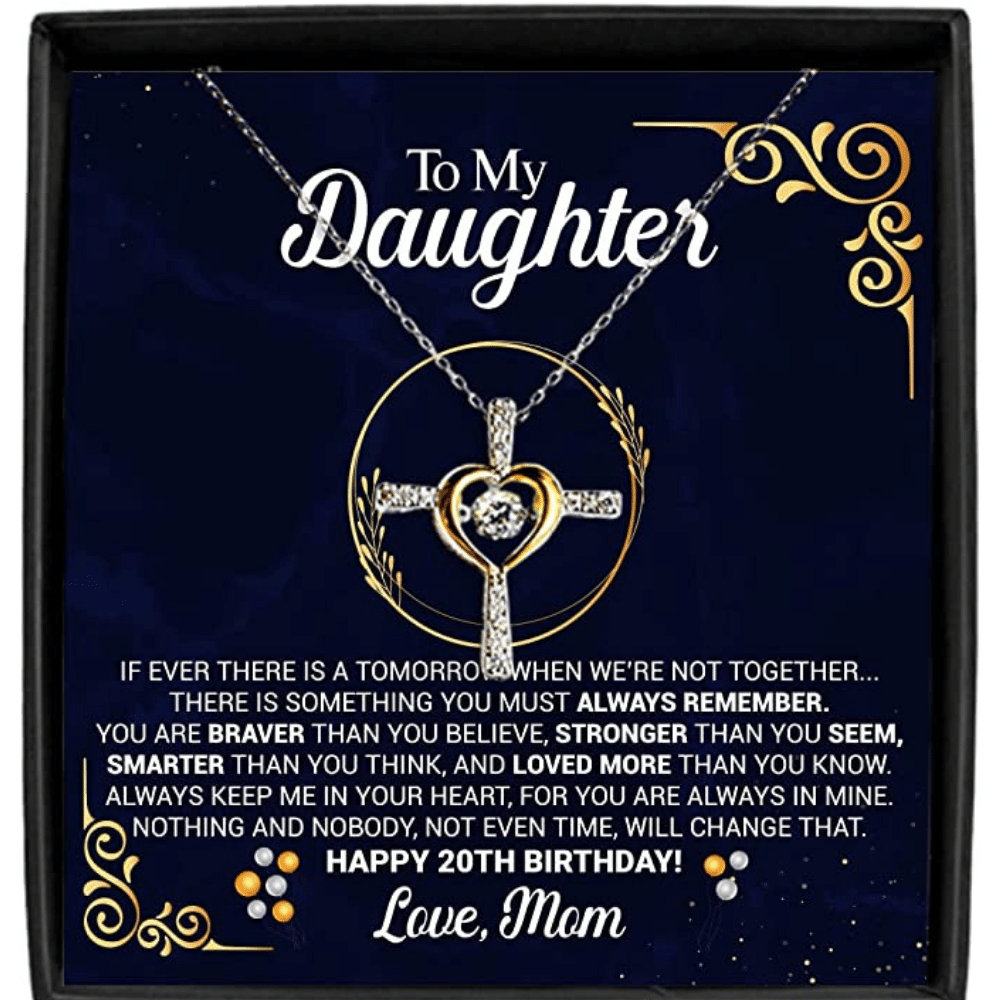 Happy 20th birthday to your daughter! Gifting her with an exquisite necklace is sure to make her day even more special. This Cross Dancing Necklace gift is crafted out of .925 Sterling Silver material and triple-plated with 14K gold petals; it's sure to last for years, reminding your daughter of this special milestone. Its delicate size measures 1 inch (25mm) in length and 0.85 inches (21.6mm) in width, making the design lightweight for easy wearing keepsakes. Plus, its adjustable chain length gives your daughter the perfect fit. The accompanying message card is printed in the USA and makes this happy 20th birthday gift even more meaningful.