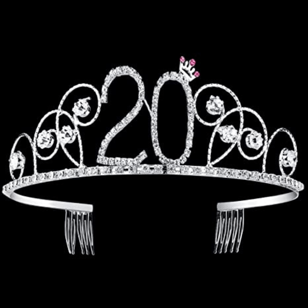 The BABEYDOND Crystal Birthday Tiara Crown is sure to bring some sparkle and joy to that special happy 20th birthday celebration! This luxe crown is crafted with 100% eco-friendly materials, including alloy metal, crystals, rhinestones and a strikingly prominent number “20”. With its arc length of 8.46 inches and height of 2.01 inches, it fits comfortably onto most ladies with a gently bendable design. The tiara is fully adorned with shiny rhinestones for maximum wow-factor and stability on the head is provided by two combs placed on both ends. Not only will this elegant piece make happy 20th birthday gifts extra special, but it can also be used as additional styling at club events, Halloween costumes or Christmas get-togethers - or even as a birthday cake topper!