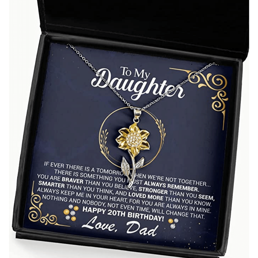 A happy 20th birthday gift that any daughter will never forget! This To My Daughter 20th Birthday Sunflower Pendant Necklace Gift is perfect for celebrating this special occasion. The stunning .925 sterling silver material and triple plated 14K gold petals are sure to make your daughter feel extra loved. Not only is the necklace gorgeous, but also includes a message card printed in the USA as a special reminder of your love and appreciation. With the adjustable chain length and sunflower pendant necklace size of 1.38 inches (35mm) combined with lightweight of only 14oz, this happy 20th birthday gift is one she will always cherish! This gift will make the special day to an inclusive experience.