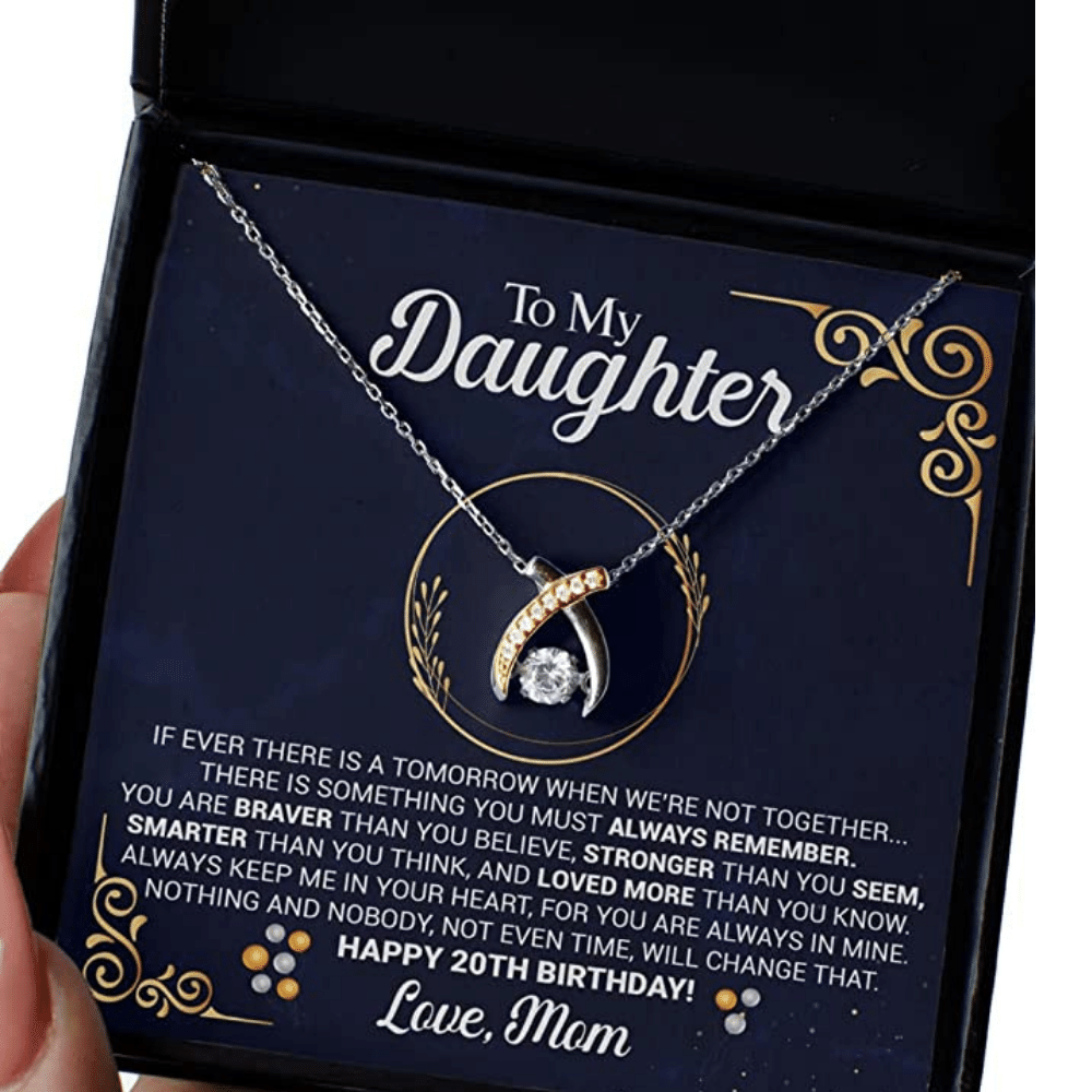 Say happy 20th birthday with the perfect necklace from mom! Get your daughter a To My Daughter 20th Birthday Wishbone Dancing Necklace Gift that is sure to make her happy. The special necklace is made of .925 Sterling Silver for an elegant yet durable present. What’s more, one half of the wishbone is sterling silver and the other half is 14K gold plated; plus, the petals are triple-plated in 14K gold. Also included is a message card printed in the USA to add a personal touch to this happy 20th birthday gift. With adjustable chain length, get your daughter a necklace she won’t forget anytime soon and something she can always cherish!