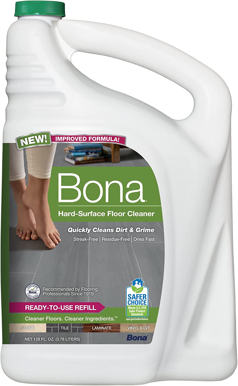 Bona Hard-Surface Floor Cleaner Refill, for Stone Tile Laminate and Vinyl LVT/LVP, 128 Fl Oz