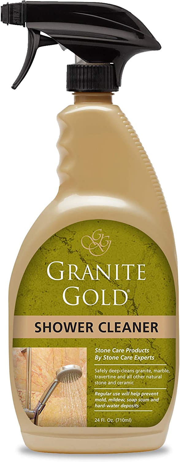 Granite Gold Shower Cleaner Spray for Quartz, Granite, Marble, Ceramic, and Other Stone Tub Surfaces, Made in the USA, 24 Ounces, Gold