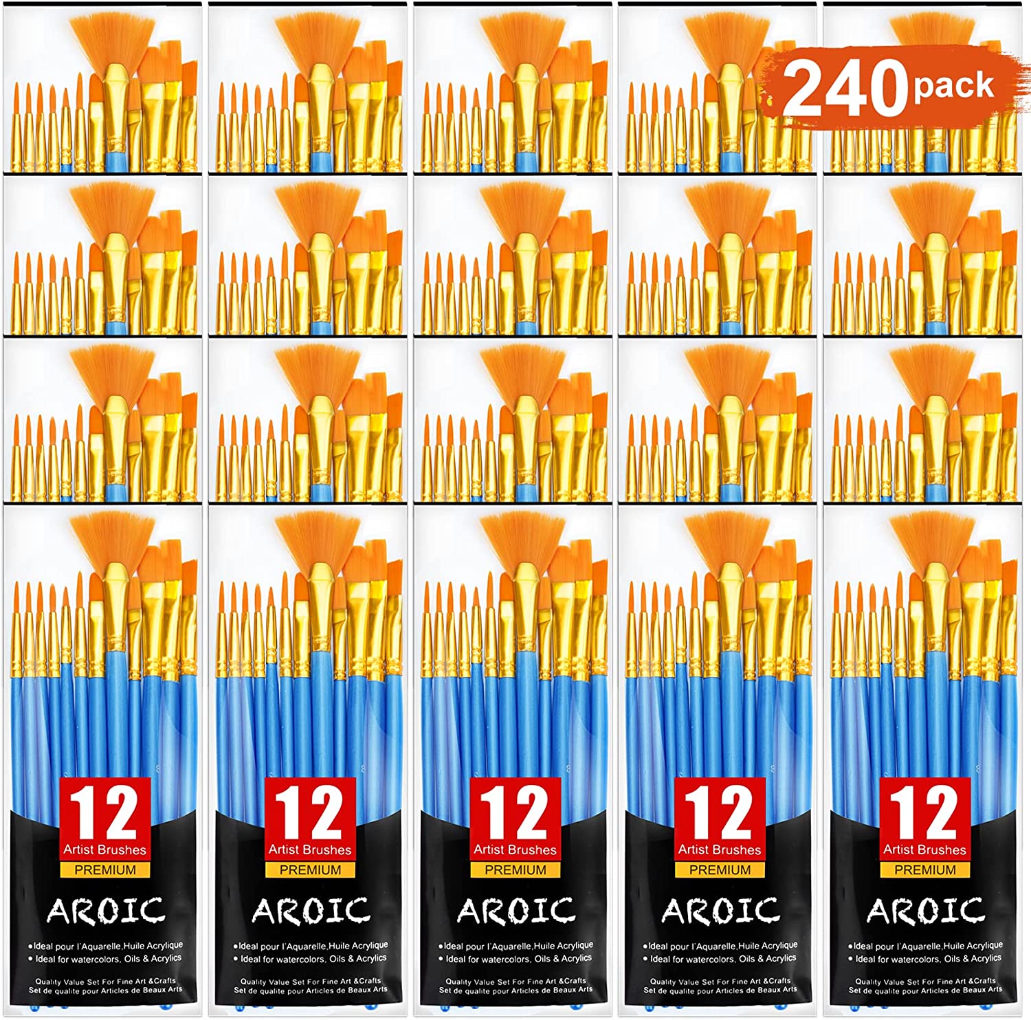 AROIC Painting Brush Set, 20 Packs /240 Pcs, Nylon Brush Head, Suitable for Oil and Watercolor