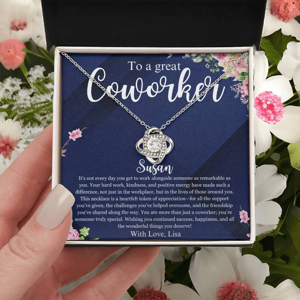 Coworker Gift, Farewell Gift for Coworker, Personalized Love Knot Necklace for Coworker, Coworker Birthday, Going Away Gift For Coworker, Christmas Gift