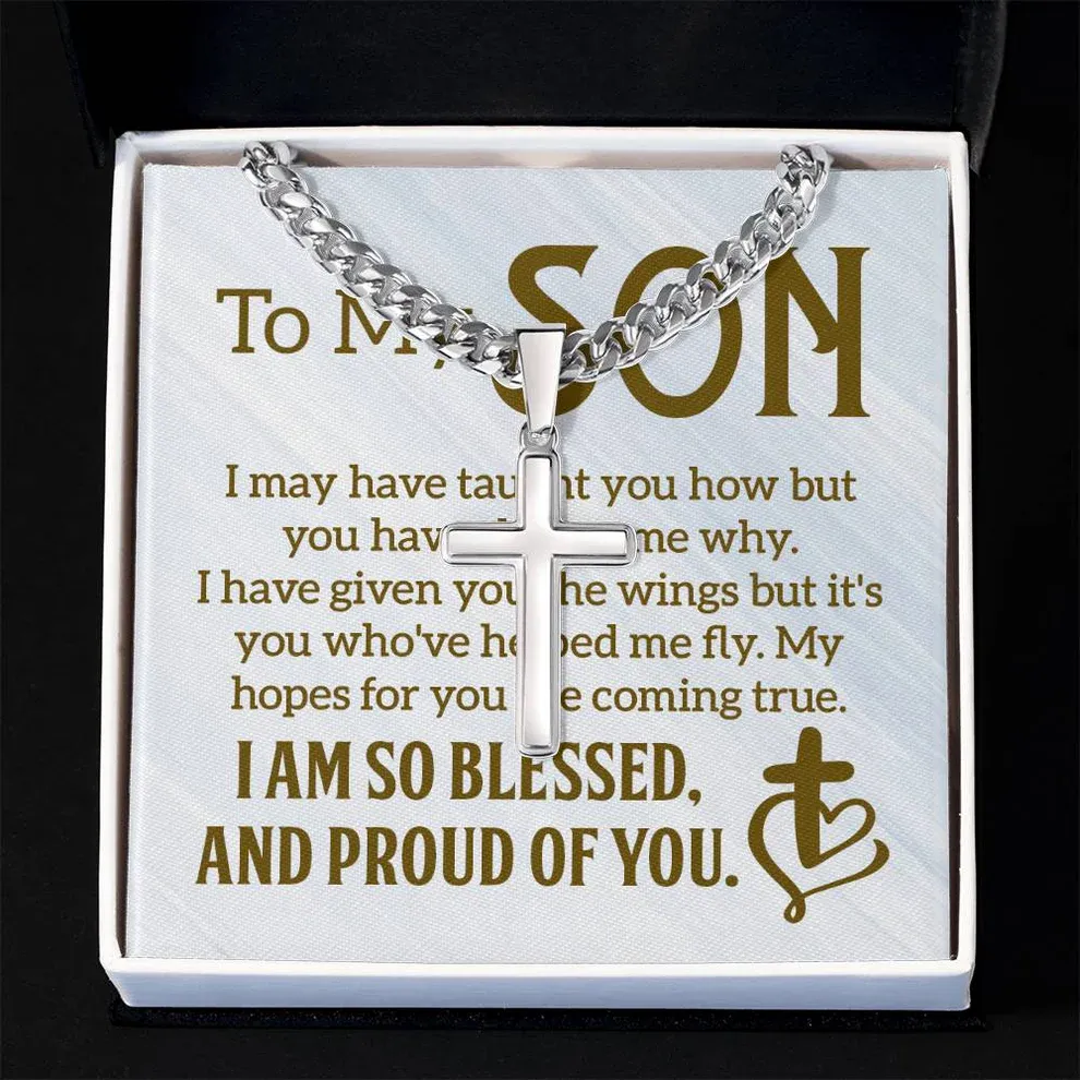 Son Gift Necklace, Cuban Link cross Necklace, Birthday Gift Necklace For Son, Birthday Gift Necklace For Son, Gift From Mother, Father, Graduation Gift For Son