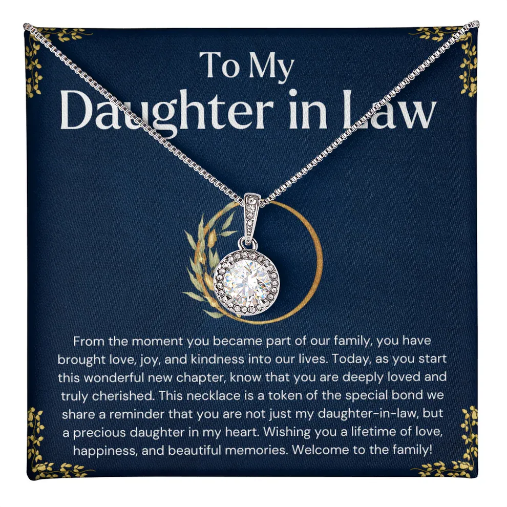 "To My Wonderful Daughter-in-Law – From the moment you joined our family, you have brought so much love, joy, and happiness. May this necklace remind you that you are always cherished, and may love and luck follow you in all you do."