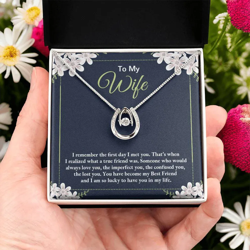 Wife My True Friend Gift Necklace, Birthday Gift Necklace For Wife, Lucky In Love Gift Necklace For Wife, Anniversary, Valentines Gift from Husband