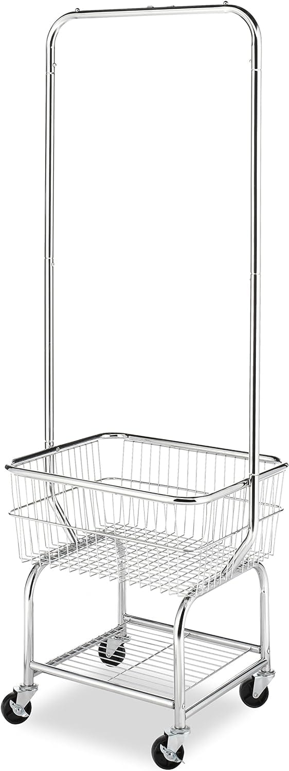 Whitmor Commercial Rolling Laundry Butler with Wire Storage Rack