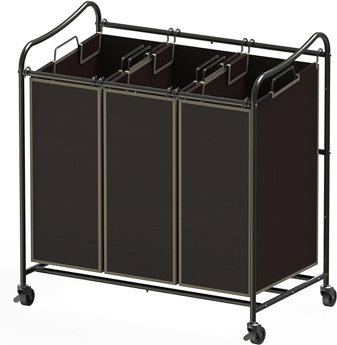 Simple Houseware Heavy Duty 3-Bag Laundry Sorter Rolling Cart, Bronze